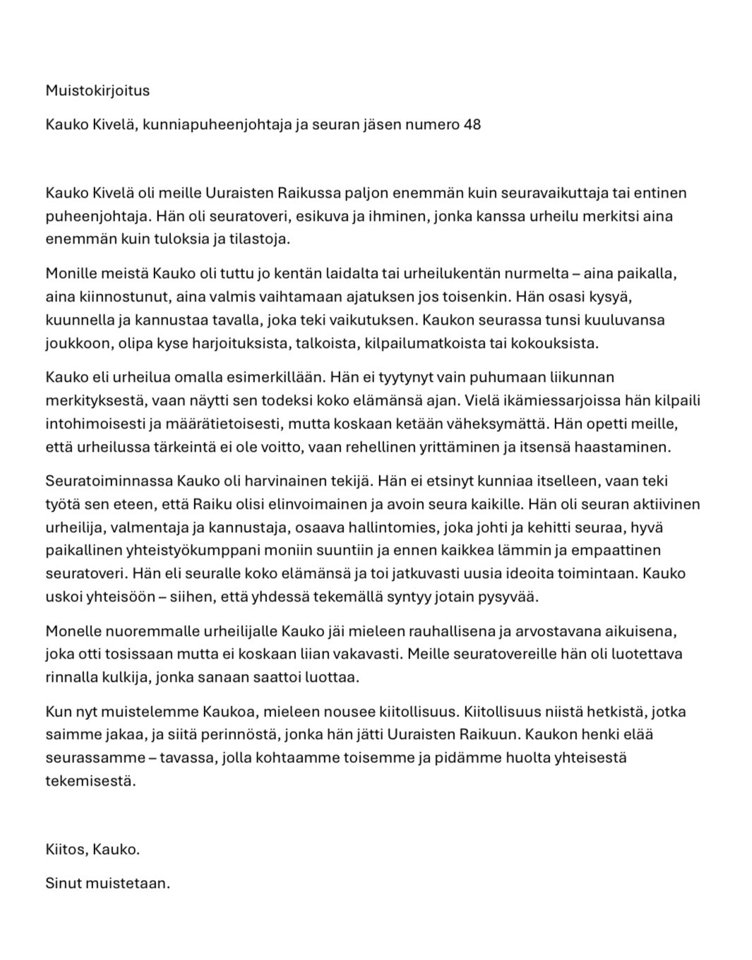 EtusivuAjankohtaistaIn Memoriam Kauko Kivelä 🕊️ In Memoriam Kauko Kivelä 🕊️ / Ajankohtaista / Kirjoittaja Tanja Vakkeri